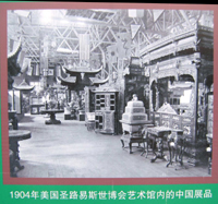 1904年美國圣路易斯世博會是中國首次以官方形式率商人正式參加的世博會。當時清政府對該屆世博會給予了相當的重視斥巨資修建了具有民族特色的中國村和中國展館。華式房屋園林亭榭佐以上等華式器具陳設,顯得輝煌壯觀。不過,這次中國展品中同樣包括大量模型等,但晚清政府的參展觀念里還缺乏現代化的展示與觀看意識。