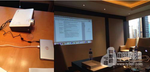 今天在香港開會,本來用酒店的投影機做商務演示,結果設備竟不能和蘋果電腦協作辦公……恰巧隨身帶的小明M1激光微投派上用場,高亮巨幕配合清晰效果讓客戶非常滿意。更重要的是不必支付酒店投影機使用費用,按400港幣/小時算,上午十點到下午五點的會議,省下不少銀兩。