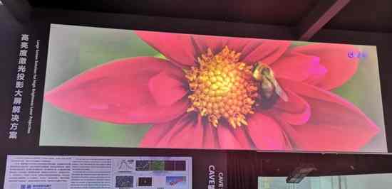 “高亮度激光投影大屏解決方案”展示出國畫激光投影機亮度高的優勢,“8K激光顯示方案”則體現了國畫激光投影機清晰度的特點。該方案采用兩臺4K超高清雙色激光工程投影機LP50UM融合投影,投射出分辨率達8K的畫面,畫質細膩,色彩艷麗、顯眼,這一方案是4月北京IFC展正式發布4K機型后的升級展示,也成為本次國畫展臺的一大亮點。