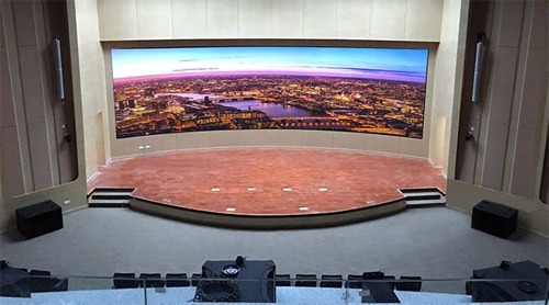 贏康為該演示廳提供了雙通道主動(dòng)立體正投弧形屏幕顯示系統(tǒng),與現(xiàn)有系統(tǒng)比較,具有更高分辨率、更高亮度、光源超長(zhǎng)壽命、低噪音、低散熱和極低運(yùn)行維護(hù)成本等特點(diǎn)。