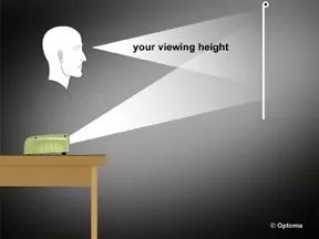 遇到這種情況,我們可通過投影儀的梯形矯正功能進行畫面調節。數字梯形修正是指透過scaler的演算來調整畫面成為四方形。以下是將投影機抬高打出來的畫面: