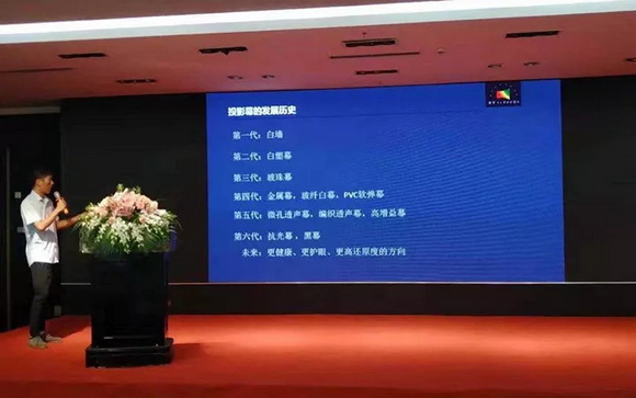 從第一代白墻,至第二代白塑幕;第三代玻珠幕;第四代金屬幕,玻纖白幕,PVC軟彈幕;第五代微孔透聲幕,編織透聲幕,高增益幕;第六代抗光幕 ,黑幕;未來投影幕將會朝著更健康、更護眼、更高還原度的方向發展。
