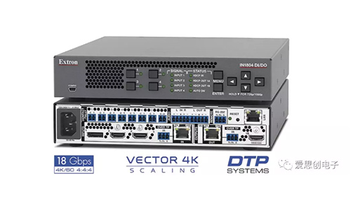 Extron 非常高興地推出 IN1804 DI/DO。作為 IN1804 家族的全新成員,它是一款緊湊型 4 路輸入圖像解析度轉換器,具備卓越的視頻縮放、切換和集成特性。該產品支持高達 18 Gbps 的數據速率,以及分辨率高達 4K/60,帶 4:4:4 色度取樣的計算機和視頻信號,同時符合 HDCP 2.2 標準。它采用 Extron 專利的 Vector™ 4K 解析度轉換引擎及 30 位色深的視頻處理, 以確保最最佳的畫面質量。單路 DTP2 輸入和單路 DTP2 輸出可通過單根 CATx 屏蔽電纜輕松將視音頻及控制信號延長至 100 m (330') 遠的各端點。IN1804 DI/DO 圖像解析度轉換器可提供快速、可靠的自動切換, 以及音頻加嵌/解嵌、無縫轉換效果、徽標鍵入和雙絞線延長等眾多高級功能, 其性能及靈活性可滿足最嚴苛的演示環境應用需求。