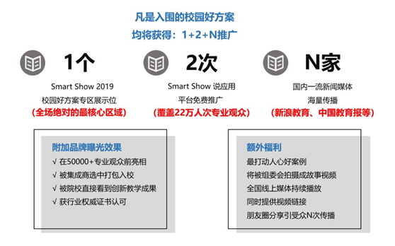 拿下用戶人氣獎的校園好方案,將獲得年底Smart Show 展會上官方記者組的獨家專訪報道,在數萬專業觀眾面前進行精準傳播。