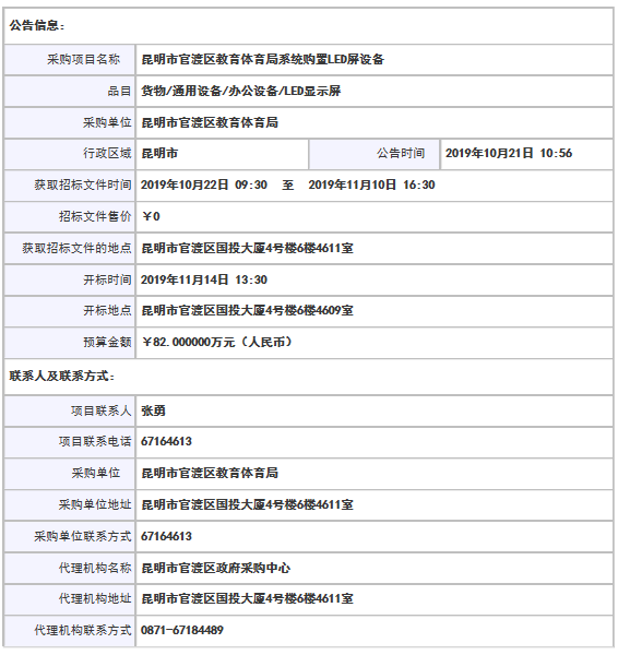 采購項目名稱: 昆明市官渡區(qū)教育體育局系統(tǒng)購置LED屏設(shè)備