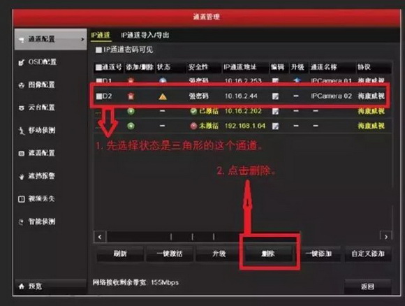 通道配置 —IPC通道 ,選擇設(shè)備,點(diǎn)擊刪除