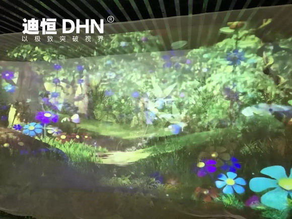 迪恒旗下不僅有明星產品DM907超短焦激光投影機,還有專業7系工程激光投影機,7000(以上)流明穩定光源輸出,全新的固態激光光源,被廣泛應用于科技館、文化館、企業展臺、自然館、博物館、影院、地鐵/高鐵廣告、校史館、報告廳等眾多場合。依托產品的獨特性,迪恒(DHN)投影為此次項目提供了強有力的設備支撐,出色完成了一場沉浸式投影的項目計劃。