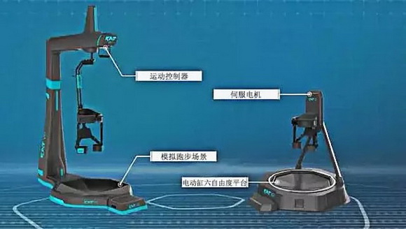 VR虛擬跑步機是由電腦、運動控制器、伺服電機、電動缸六自由度平臺、VR設備、模擬跑步軟件等組成。