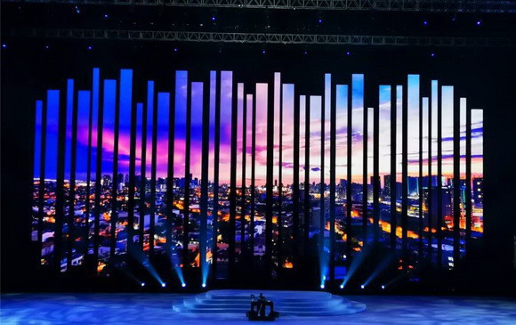 在安裝上,也充分滿足了舞臺(tái)設(shè)計(jì)需求。該屏整體面共計(jì)393㎡,采用吊裝的方式,吊裝的屏體垂直長(zhǎng)度達(dá)到了18米,此等高度超過(guò)了平常屏體吊裝極限,而且是在采取鋼結(jié)構(gòu)的方式下完成,安裝和維護(hù)都非常具有挑戰(zhàn)性。