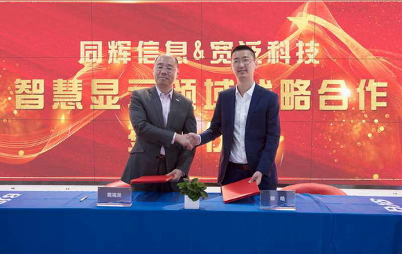 4月11日,同輝佳視(北京)信息技術(shù)股份有限公司(簡稱 :同輝信息)與上海寬泛計(jì)算機(jī)科技有限公司在京正式簽訂智慧顯示領(lǐng)域戰(zhàn)略合作協(xié)議,雙方將在智慧顯示領(lǐng)域中建立長期合作關(guān)系,并在全國市場(chǎng)進(jìn)行業(yè)務(wù)開拓,實(shí)現(xiàn)優(yōu)勢(shì)互補(bǔ)、共同發(fā)展。