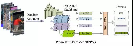 首先,大華創(chuàng)新應(yīng)用圖像數(shù)據(jù)增強(qiáng)方法,其主要包括隨機(jī)模糊和隨機(jī)截補(bǔ)等策略,能夠有效地模擬各種環(huán)境下的人體遮擋、模糊和不完整等復(fù)雜情況。隨機(jī)截補(bǔ)策略有助于挖掘分塊部件網(wǎng)絡(luò)的特征提取潛力,提升網(wǎng)絡(luò)的特征匹配性能。