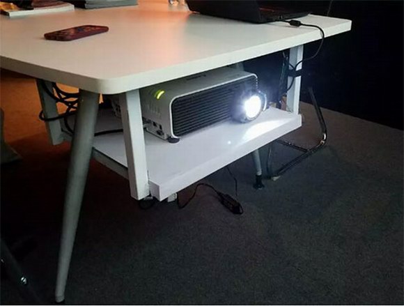 大范圍鏡頭位移使其可實現桌下隱藏式安裝,節省了桌面空間,為小面積辦公室或會議室應用帶來了很大便利;同時,電腦和投影機可通過Wi-Fi直接連接進行無線投影。