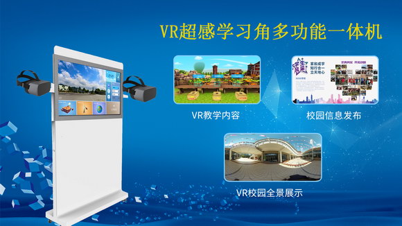 VR超感學習角是一款多功能一體機,由VR頭顯設備、學習角一體機硬件及VR軟件內容組成,可以實現校園實景展示、校園信息發布、VR課程學習等功能,包括VR科普常識、學科融合,以及知識延伸等內容,為師生提供更加生動、多元化的學習方式。其次,作為校園形象的充分展示,學習角一體機滿足了多方面的需求,靈活簡單的后臺管控系統,全面的功能體系,為打造智慧校園保駕護航。