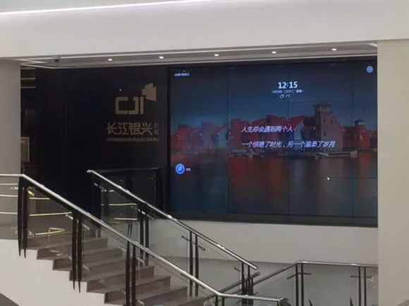 在進(jìn)行實(shí)地考量后,AOC為武漢長江銀興影城選用的4*4智能拼接屏壁掛式安裝,整體不會過多占據(jù)通道空間。前端以單臺PC推送多路網(wǎng)絡(luò)信號輸出到
