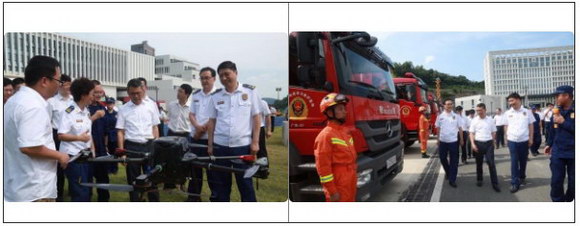 廣東省應急管理廳黨組書記、廳長王中丙觀摩、指揮演練并發表講話,副廳長、省消防救援總隊總隊長張明燦,副廳長高涌濤等領導在現場觀摩演練。