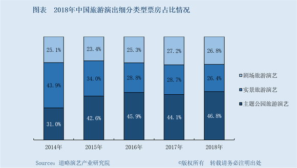 。ㄒ唬┱w情況:主題公園演藝持續(xù)增長(zhǎng),實(shí)景旅游演藝不斷下滑