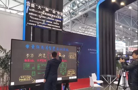 雷曼光電超高清智慧會議顯示系統在首屆世界顯示產業大會上首次亮相。該款一體機集Micro LED超高清顯示面板,華為海思 V811旗艦芯片,配置Android+Windows雙系統,同時具備書寫同步、異地投屏、多方式接入、會議錄制、會議加密傳輸等多項功能,解決了普通會議室白板或投影看不清、連不上、寫不便、無遠程的痛點。