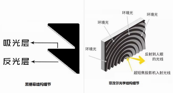 黑柵幕,能較好地抵抗來自特定角度的環境光。