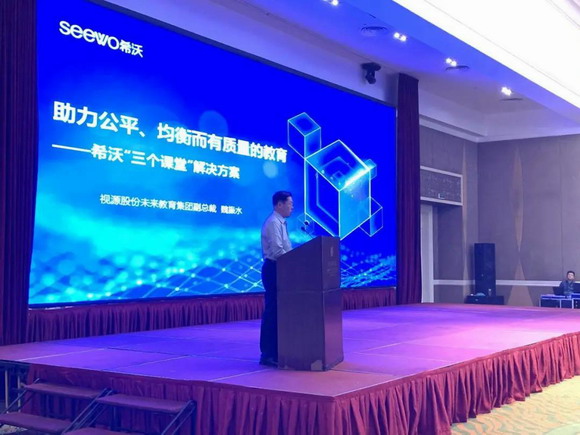 各省轄市教育主管教學工作的負責同志、主管信息化工作的負責同志、基教科長、教研室主任、電教館長、各縣教育局主管教學工作的負責同事、主管信息化工作的負責同志等眾位嘉賓出席了本次會議。視源股份未來教育集團副總裁魏振水代表希沃在會上作了《助力公平、均衡而有質量的教育》的專題發言。