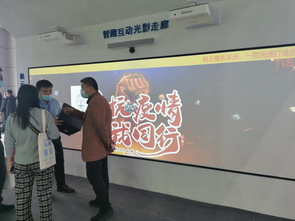 除了主展項東方中原還展出了智慧黑板、液晶觸摸一體機、幼兒白板一體機,智趣互動光影走廊等互動性展項,其中光影走廊依托于楓云疊影系統,可以打造互動多媒體信息平臺。展出產品索諾克SNP-AH360UT系列及長江系列激光投影機是東方中原旗下品牌索諾克新品,分別適用于教育及商務辦公場景。
