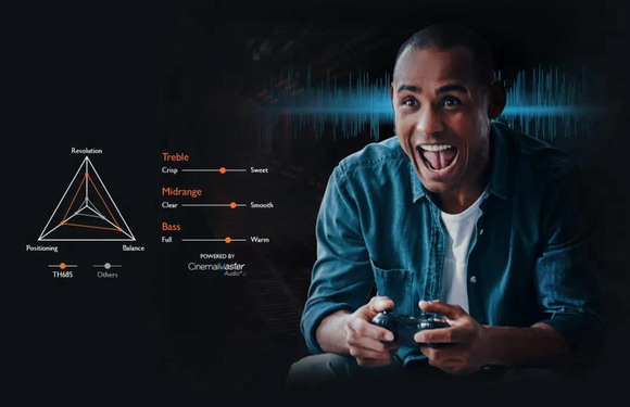 明基TH685更支持HDR10和HLG,進一步拉開明暗層次,亮部不過曝,暗部有細節,畫面通透如水晶。尤其是播放犯罪、恐怖等題材的影片,更好地展現暗場景,讓觀眾可以看到城市的隱秘角落,感受懸疑氛圍。而內置的專業音箱有treVolo音效團隊打造,真實還原電影音效、音樂,讓人聽見人聲的哽咽、子彈劃過空氣等,真正走進影片,融進情緒。