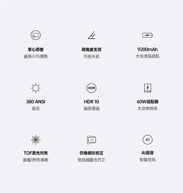 堅果M7配置了全新TOF激光自動對焦,1秒鐘畫面立刻清晰,幾乎一瞬間就能看到投影畫面。還支持四角校正功能,就算你側著投,背著投,還是正面投屏,畫面方方正正,給你最完美的畫面。畫質方面,擁有HDR10解析能力,兼容1080P,流明亮度達到250ANSI,在輕便型智能投影儀的各類產品中非常有競爭力。同時,堅果M7還配置了AI藍牙語音和智能操控系統,輕輕一按立即喚醒,輕松遙控投影儀,方便快捷。