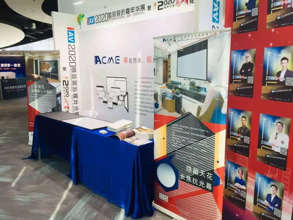 此次大會(huì)ACME參與并展出了自己的投影幕。因?yàn)樵诰频昱e行場(chǎng)地有限,所以我們僅展出了兩款市場(chǎng)最受歡迎的產(chǎn)品。一款是短焦抗光幕(激光電視專(zhuān)用屏),另外一款是2.8增益微珠幕,2.8增益微珠幕能夠在明亮環(huán)境中還原最好的畫(huà)面。