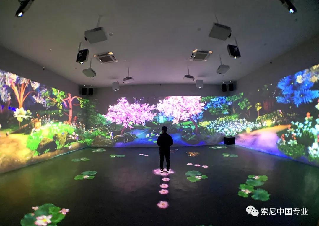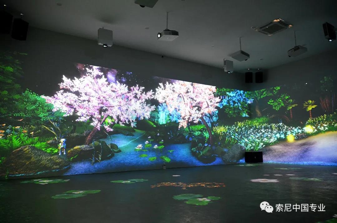 12臺索尼VPL-F540HZ投影畫面覆蓋整個房間的地面與三面墻壁。