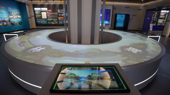 環繞式投影配備互動解決方案,當觀眾想了解萍鄉的重要生態區建設規劃時,點擊顯示屏即可看到萍鄉的山、林、湖等風景秀麗的畫面,充分發現萍鄉的美。
