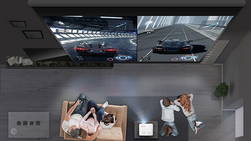 同時,液晶顯示器的尺寸過小,即便是有高刷新率的電競專用顯示器,效果也依舊不夠震撼。而能夠投射出大屏幕的傳統投影機并沒有專門為電競做優化,因此畫面顯示效果同樣不夠理想。