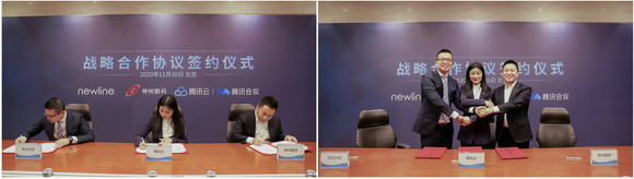 11月30日,鴻合科技、騰訊云、神州數碼三方戰略合作協議簽約儀式在騰訊北京總部大廈舉行,三方將圍繞云視頻會議硬件展開深度合作,共同打造面向會議場景的數字新連接方式,構建開放融合的云視頻會議新生態。騰訊云副總裁付曼青、鴻合科技CEO王京、神州數碼集團常務副總裁葉海強等出席簽約儀式。