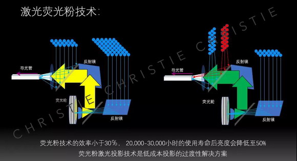 以下兩張圖可以助您了解 RGB 純激光技術和激光熒光粉技術的差異所在。