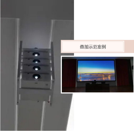 疊加是投影機工程應用中最常見的方案之一,通過兩臺或多臺亮度較低的投影機疊加投影,獲得更高亮的投影顯示效果,該方案較單臺高亮投影有更高的性價比,施工簡單,在疊加方案應用上,我們和大家分享如下使用技巧和注意事項。
