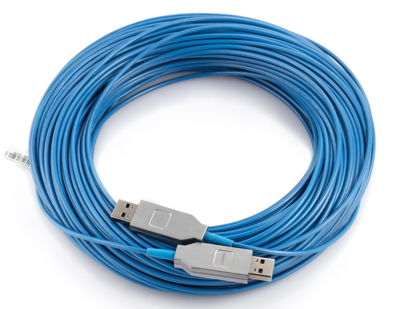 華光昱能Hangalaxy品牌的USB3.0光纖高速數據線有HU3H系列(可供電,最長傳輸距離50米)和HU3系列(不可供電,最長傳輸距離100米)兩款。其中HU3H系列是為了彌補HU3系列的USB3.0光纖數據線無法給設備供電的缺陷開發的一款新產品。在采用光纖作為傳輸媒介的基礎上,集成銅線以達到給設備供電的目的。在不增加任何中繼設備的情況下,5Gbps傳輸距離從10米到50米。此款產品的特點是:1.即插即用,支持熱拔插,無需專用驅動;2.無需單獨供電;3.信號零衰減,零延遲;4.強抗干擾等。