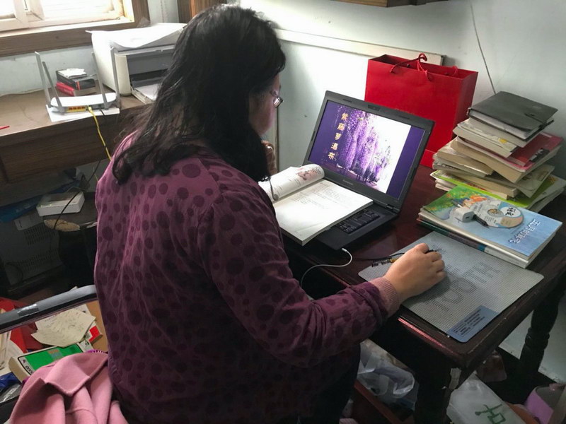 “原定的開學時間在即,而我還沒探索出適合我們的線上教學方式。那些天頭腦里滿是怎樣有效實施我校的線上教學。最焦躁的時候我接觸到了希沃白板的云課堂,于是開始學習希沃白板的云課堂線上教學模式,一邊不斷自己的摸索,一邊不斷地請教后臺的技術人員!庇捎趯W校教師年齡結構偏大,教師信息化能力較弱,于是周老師就一位一位教師進行視頻連線輔導。2月9日按照原本的工作安排是開學的日子,在這個特殊的日子里,功夫不負有心人,學校參與線上教學的老師全部掌握了希沃白板的云課堂遠程教學模式。