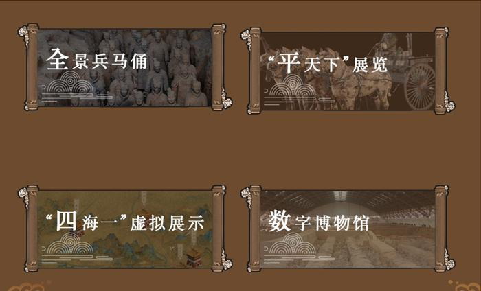 秦始皇帝陵博物院在官方網站推出“數字展示”欄目,包含“全景兵馬俑”“平天下展覽”“四海一虛擬展示”“數字博物館”四大板塊。