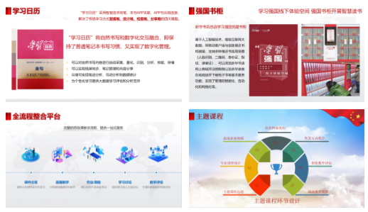 馬院聯動、智能評估、數字展示、主題課程、強國書柜、學習日歷、智能網絡、全流程整合平臺