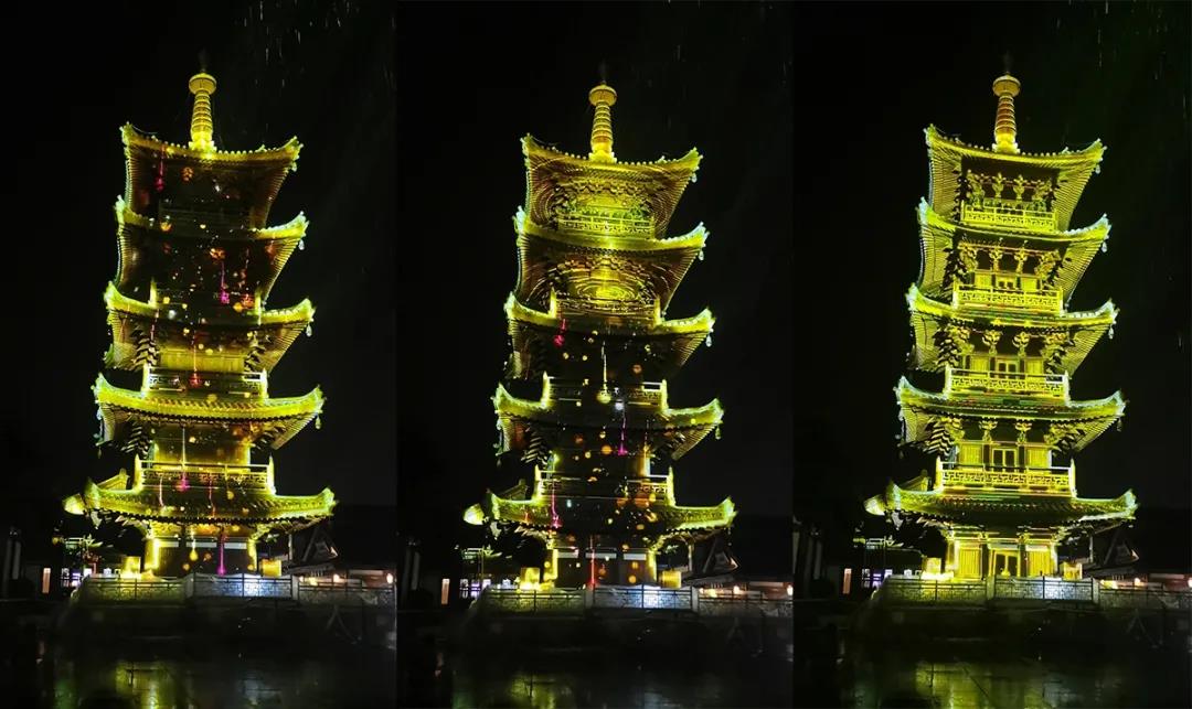 由13臺31,000流明的松下工程投影機PT-SRZ31KC打造的一場光影盛宴,讓拈花塔的整個塔身熠熠生輝!