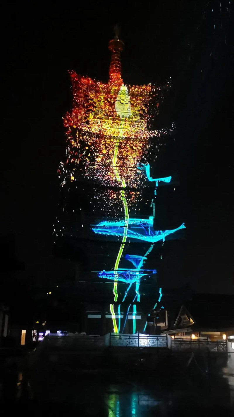 光影在高28米,寬9.8米的塔身上盡情的舞動與舒展,向游客們呈現了震人心魄的裸眼3D效果,這種觀演與文旅融為一體的體驗模式增加了人們的代入感,同時也讓游客更好的體驗了不同地域的文化內涵與民俗特色。