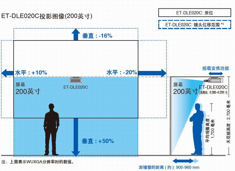 *1.直投安裝且分辨率為WUXGA時(shí)得出的數(shù)值。鏡頭位移數(shù)值因機(jī)型而異。