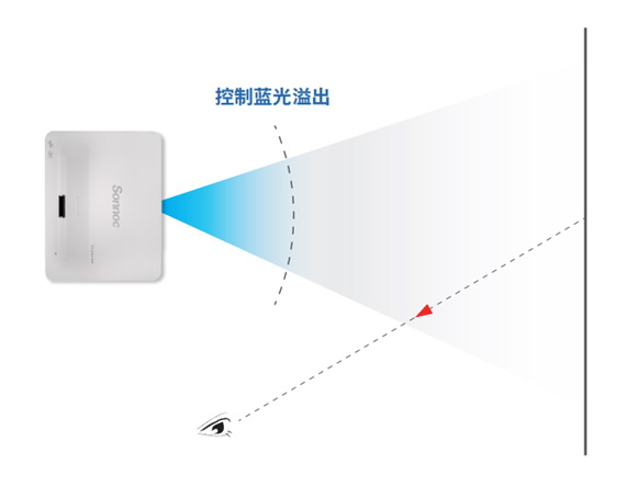 同時具有專業(yè)“顯示設(shè)備顯示性能和視覺健康”認證的投影機,可以有效控制溢出藍光危害部分(波段:420nm~460nm)。