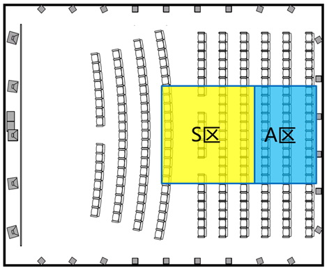 備注:圖中為15米銀幕寬度的影廳最佳觀影S區、A區