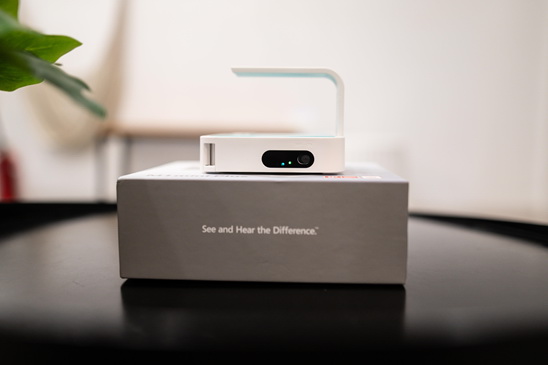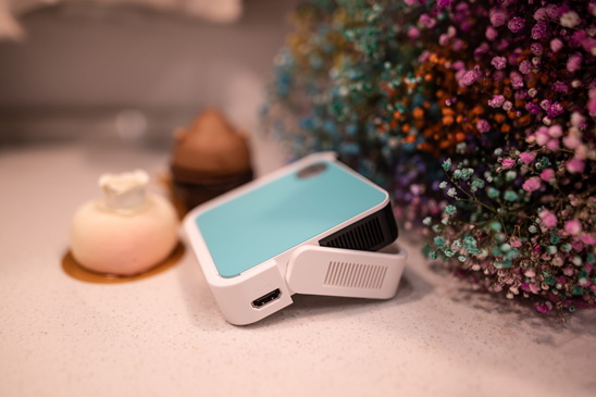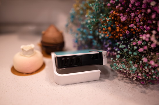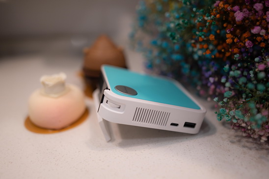 整個投影儀非常小巧,一點不像印象中的投影儀非常笨重,屬于那種隨手裝入包中不會帶來負擔的體積,而且在外觀上也非常時尚,很難讓人想到是一個投影儀,尤其在搭配亮眼一點的顏色,顏值絕對是加分的,畢竟榮獲了iF外形設計大獎。