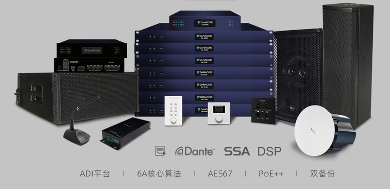 DANACOID 全網(wǎng)絡(luò)化音頻系統(tǒng)DynePro,系統(tǒng)產(chǎn)品采用Dante數(shù)字音頻傳輸協(xié)議,結(jié)合自主研發(fā)的數(shù)字音頻處理器為核心向周邊拓展,將傳統(tǒng)的麥克風(fēng)、接口機、音箱轉(zhuǎn)變成在Dante傳輸?shù)漠a(chǎn)品,從而實現(xiàn)整個系統(tǒng)AoIP的布局。