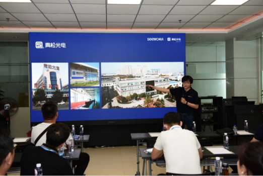 青松光電總經理陳浩瑜先生為客戶介紹了LED行業情況和各品牌之間的差異性,以及青松在全國乃至全球的案例分享。他表示:“未來,市場的應用會越來越廣泛,向企業、教育、醫療及影視娛樂等行業滲透,產業會朝著精細化、專業化方向發展。涌現多種形態的LED應用產品。我們將會在研發、工藝和品質方面做更多的投入。相信結合視源股份母公司整體的能力、希沃的品牌和渠道能力,還有青松的專業能力和行業經驗,我們一定能給這個行業帶來特別的產品!