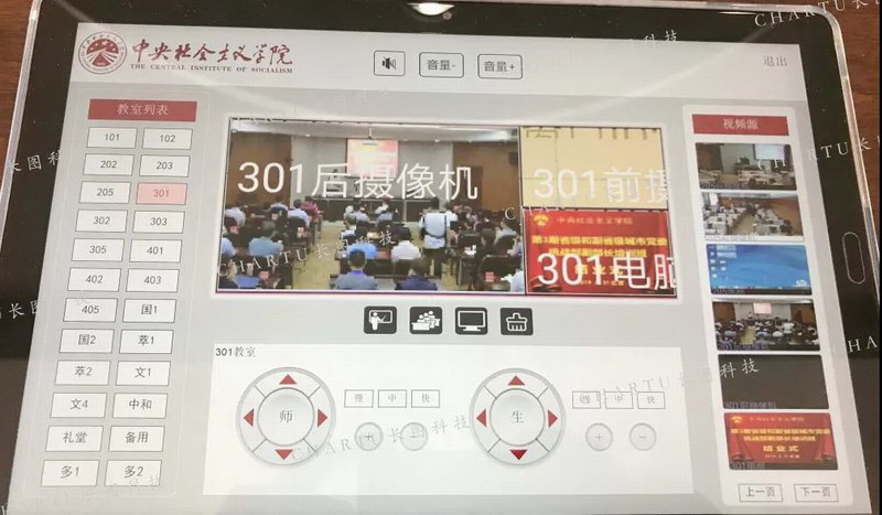 中央社會主義學院下屬4棟大樓,涉及近30間教室、報告廳、多功能等會議室,長圖采用了287個CHARTU長圖品牌分布式輸入輸出節點給學院部署一套分布式系統,實現智能巡課功能。