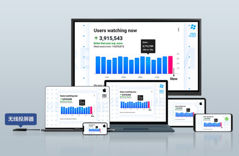 除了使用傳統(tǒng)的接口線纜連接外,會議用戶還可以通過選配USB無線投屏器,來適配多系統(tǒng)設備使用,如Windows、Mac OS系統(tǒng),而安卓及iOS系統(tǒng)也都可以通過無線的方式,完美兼容NETRIX智能交互會議平板進行投屏展示。