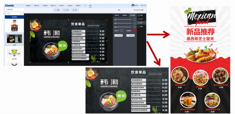 為了滿足這些新零售門店用戶的需求,杰和科技將于7月底上線智慧電子標牌系統GDS1.0。該系統針對餐廳、服裝店、超市、連鎖店、商場、機場和酒店等不同行業提供典型節目模板,支持手機、電腦建議操作。用戶只需3步即可完成節目的制作播放:選擇節目模板,更換自己的素材(視頻、圖片和文字),預覽保存及播放。價格、優惠折扣等信息可隨時更改。