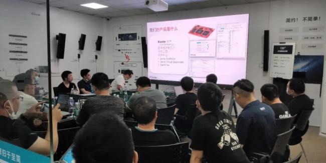 來訪學(xué)員在DANACOID工程師陪同下參觀智慧會議室并演示人臉識別、無紙化系統(tǒng)等功能。