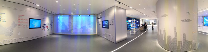 展廳以深圳國資委的“過去、現在、未來”作為創意主軸,由序廳、歷程廳、鵬城24小時、成就廳、智慧國資大屏等五個展示區組成,采用開放式設計,空間廣闊明亮,這里應用了LED大屏、拼接屏等常規大屏方案,并應用富士膠片FP-Z5000打造Mapping全息投影和投影互動墻,通過豐富的多媒體影像資料讓觀眾更深刻的了解深圳國資委的重要訊息。